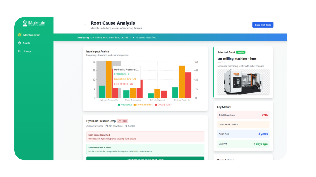 Our intelligent system automates workflows, predicts maintenance needs, and optimizes task assignments, reducing downtime and increasing efficiency. Unlike traditional CMMS platforms, iMaintain doesn’t just store data—it analyzes, learns, and adapts to keep your operations running at peak performance.